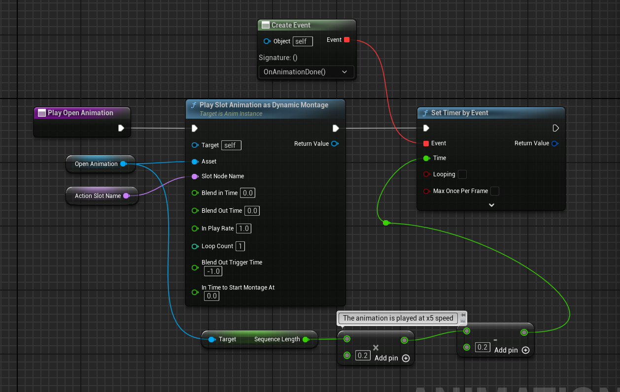 I download an asset pack with a door that had an animation, but I soon realized its not like unity and you need to create an animation blueprint for anything to play an animation, and the asset didn't come with one, so I had to figure it out with my only experience being from the one we did in END and GAR, which was different and very bloated compared to what this would need. It took me a bit but I got the animation playing. Then the main issue was, the door would constantly play the open animation from the moment the game was loaded, and just keep opening, then resetting to the normal closed model, opening again, and so on. I needed it to only play when the function I set up to play it was called, and then stop, and stay open. There were many things needed to achieve this. This is the anim graph that I copied over from what we created in END, which I was using for the door animation blueprint: